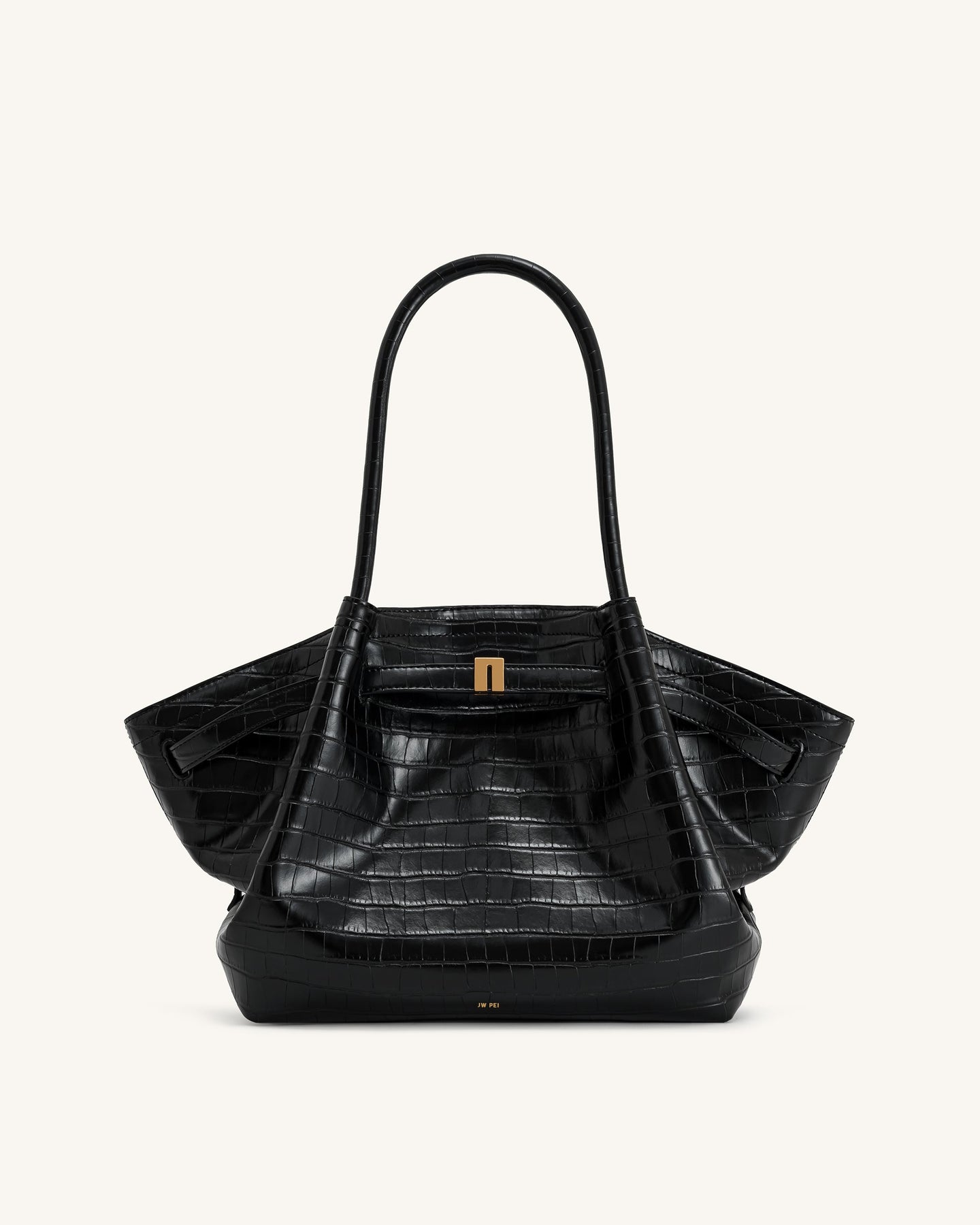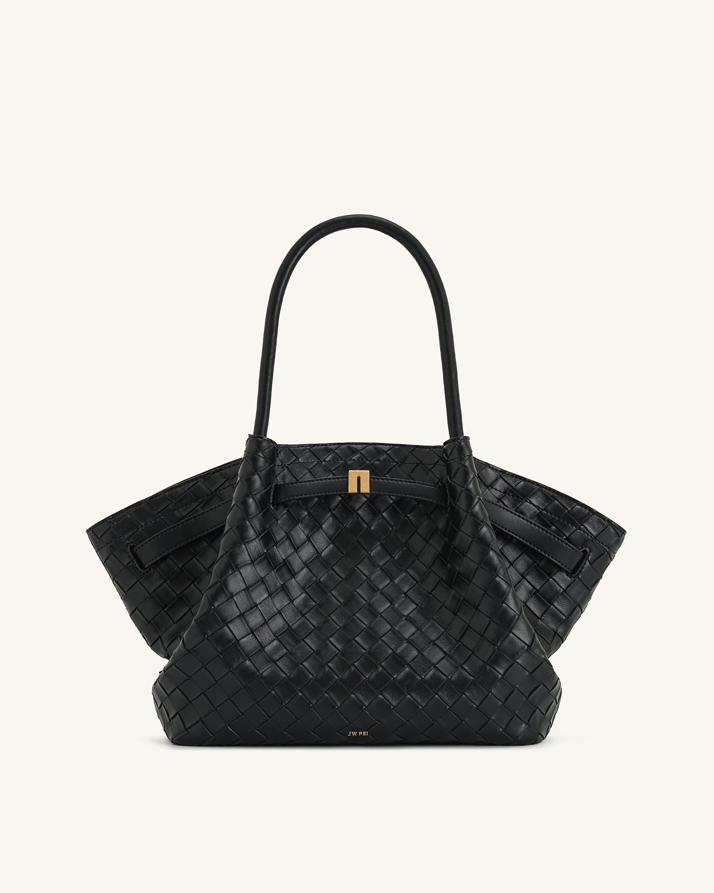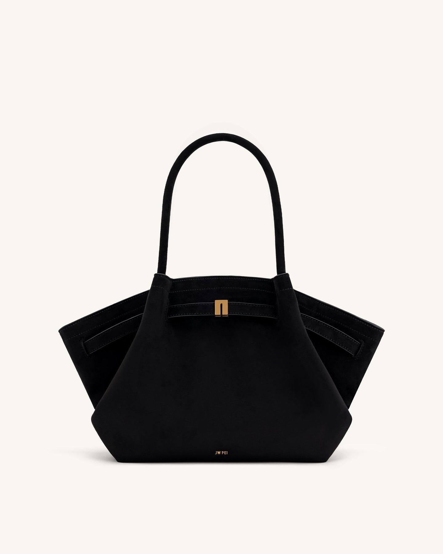 Dankzij het slimme ontwerp met een magnetische sluiting blijven je spullen veilig opgeborgen. De comfortabele ronde handvatten draag je moeiteloos in je hand of elegant in je armholte. De stevige bodem met driehoekige plooien en metalen pootjes zorgt ervoor dat de tas mooi in vorm blijft en niet direct op de grond rust.