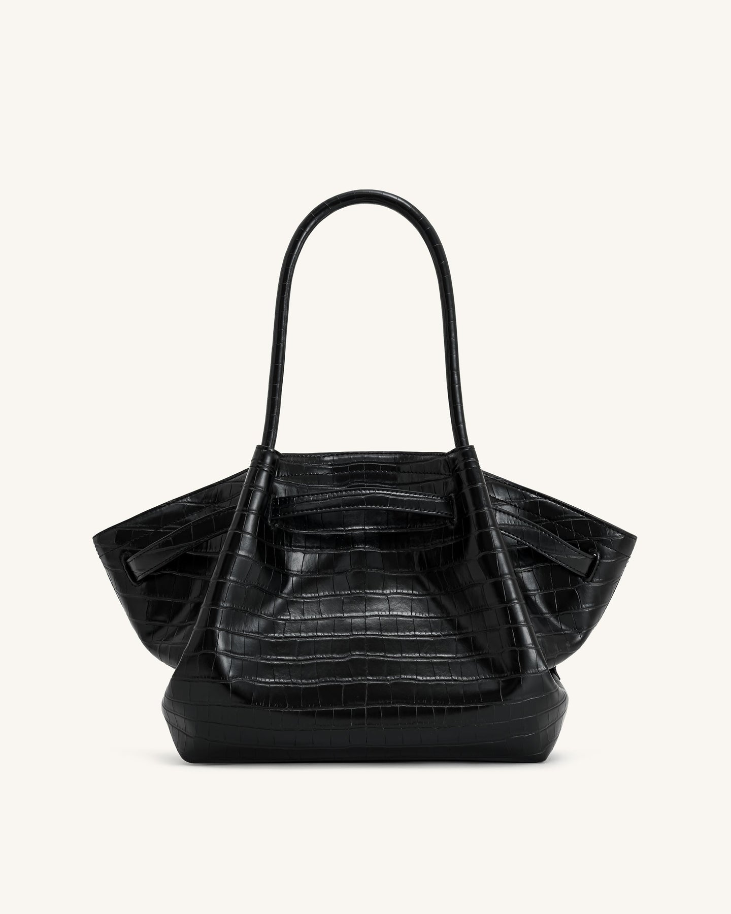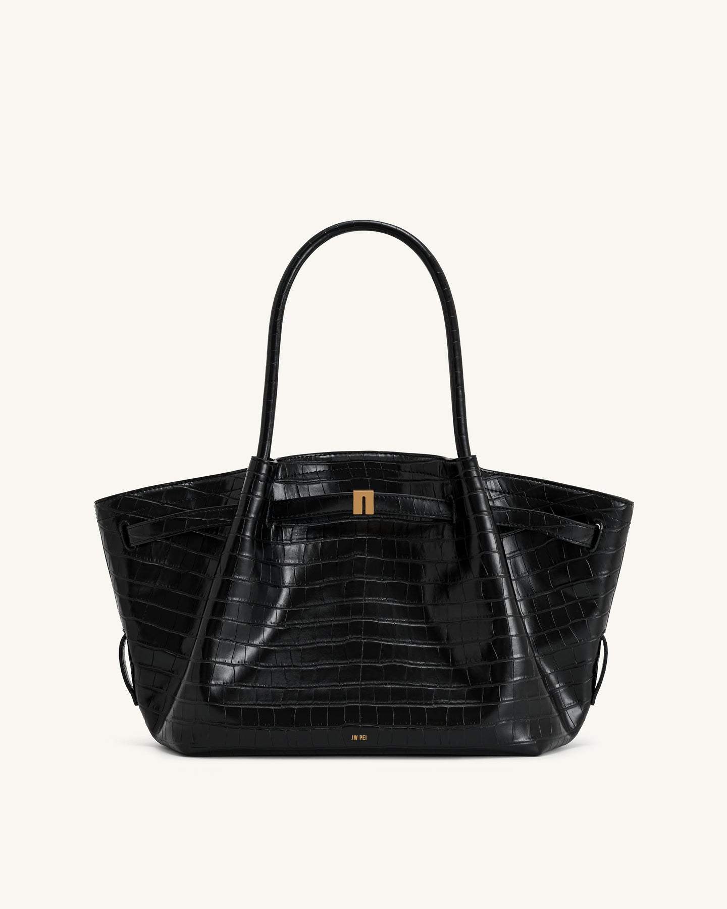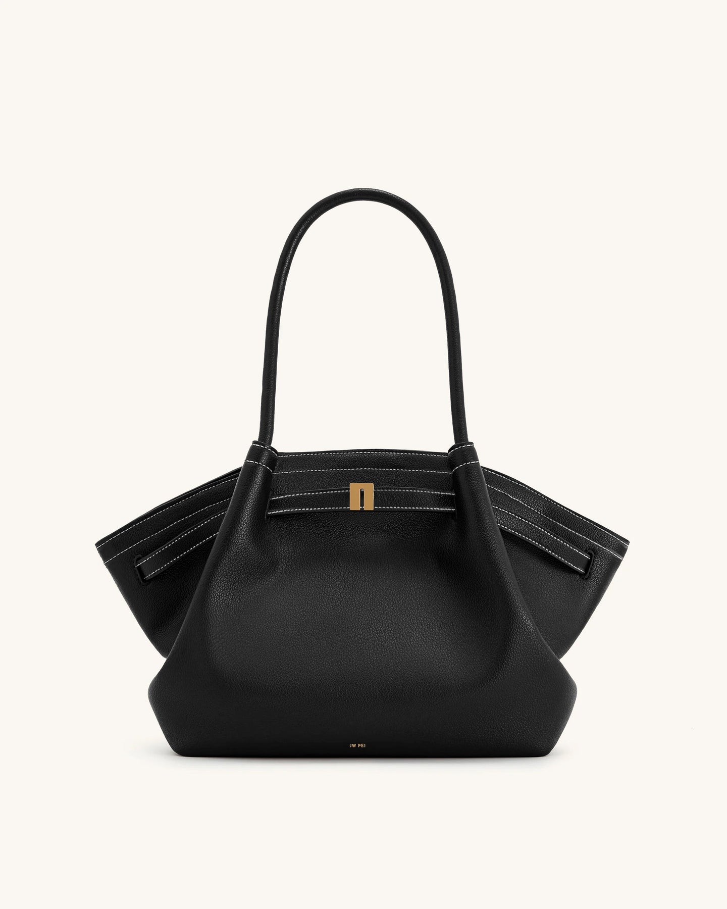 Dankzij het slimme ontwerp met een magnetische sluiting blijven je spullen veilig opgeborgen. De comfortabele ronde handvatten draag je moeiteloos in je hand of elegant in je armholte. De stevige bodem met driehoekige plooien en metalen pootjes zorgt ervoor dat de tas mooi in vorm blijft en niet direct op de grond rust.