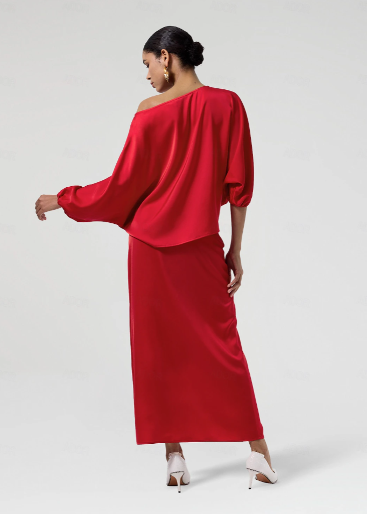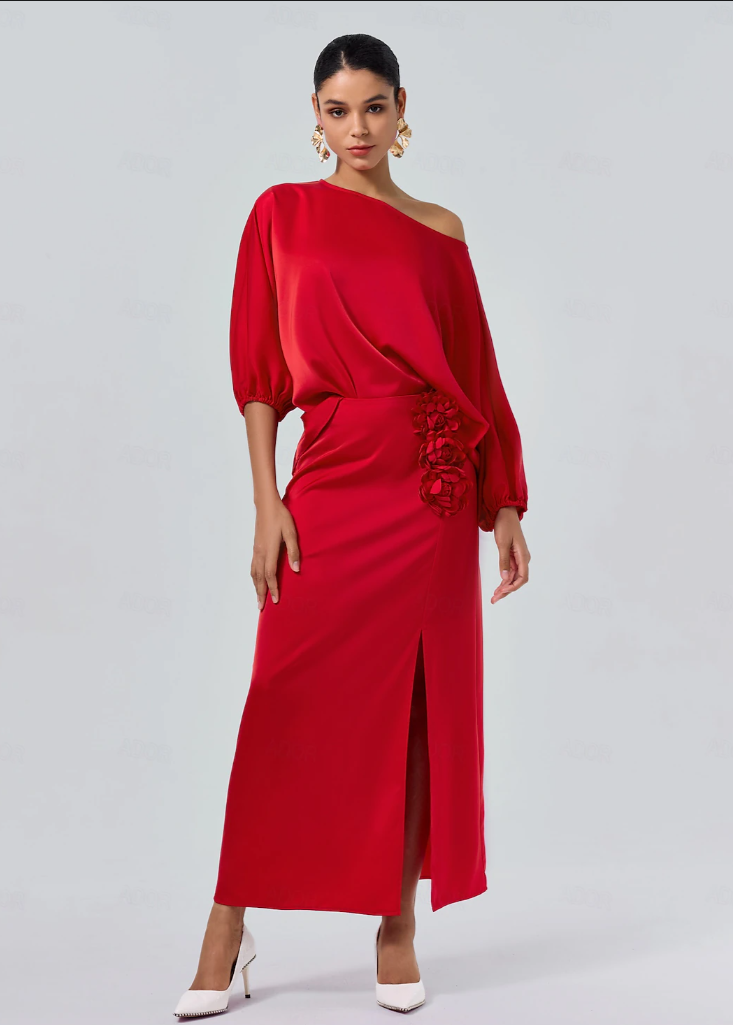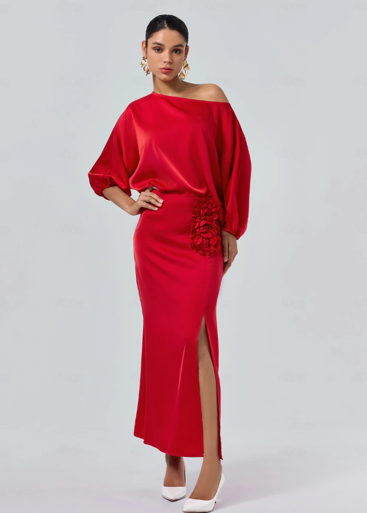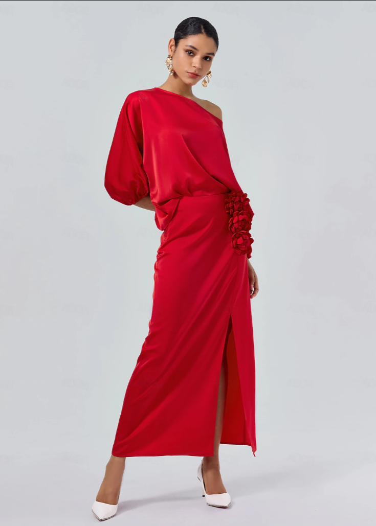 Løft din garderobe med en elegant satinfinish, designet er stadig elegant og feminint. Hjerte- og figurtop med satinfinish og højtaljet midterdel, knælængde snit med let, glat stof og for - smukt kamsløjfet og raffineret silhuet, perfekt til særlige lejligheder.